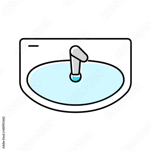 Realistický dřez s vektorem kohoutku. Vodní nádrž 3D ikona. Keramické toaletní mycí zařízení pro umývárny, toalety design interiéru. Pohled shora umyvadlo izolovaných na bílém pozadí
