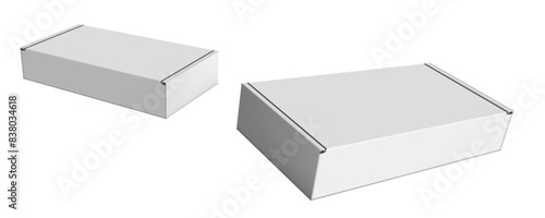 Realistický snímek box v jiné poloze a zobrazení maketa set s páskou vytáhnout vektorové ilustrace izolované na šedém pozadí. Uzavřený a otevřený dárkový prázdný kartonový kontejner