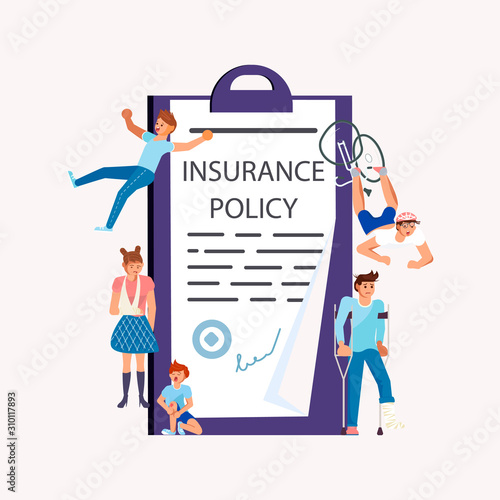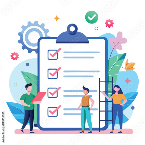 Nábor vektorový plochý styl designu ilustrace. Velká schránka s formulářem smlouvy a malými postavami. Najímání pracovních míst, koncept zaměstnanosti pro webový banner, webovou stránku atd.
