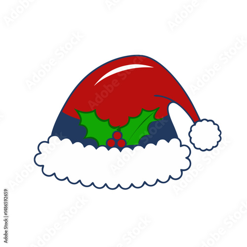 Červená santa klobouk na Vánoce a Nový Rok Party oslava vektorové ikony izolovaných na bílém pozadí.