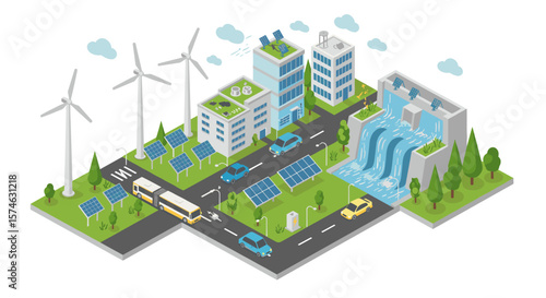Vektorová izometrická městská silnice a dodávka jezdí po trase z míst a do B. Koncept Relokační služby pro webový banner, webovou stránku atd.
