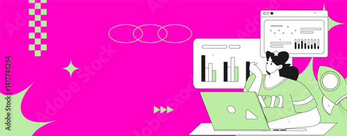 Freelancer, obchodník pracující na dálku z domácí kanceláře pomocí přenosného počítače, vektorová plochá ilustrace. List novin, smartphone, šálek kávy, kaktus rostlina na stole. Koncept domácího pracovního prostoru.
