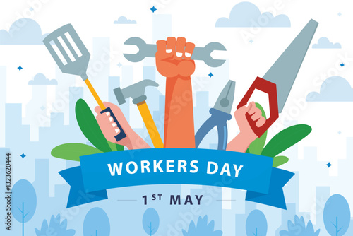 Opravy vector plochý styl design ilustrace. Kladivo, sekera, šroubovák, sklenice na barvy, pravítko, rukavice, nůž. Home repair hand Tool kit pro webový banner, webové stránky atd.