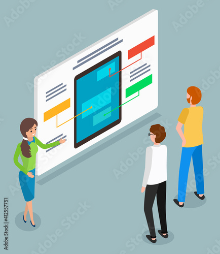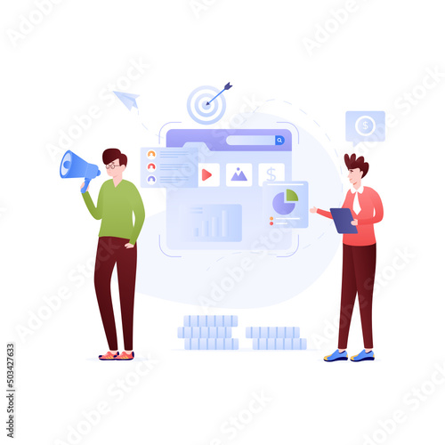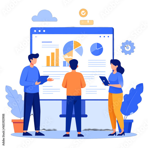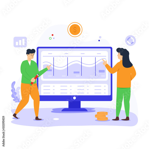Výzkum dat vstupní stránka design, webové stránky banner šablona set, plochý vektor ilustrace. Obchodní analytici studují, analyzují finanční informace interagující s grafy. Analýza dat, statistika