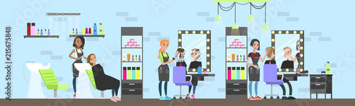 Hosté restaurace vektorové ilustrace. Návštěvníci muž a žena stojící vedle stolu s lahví vína a sklenic na víno. Interiér restaurace. Plochý design.