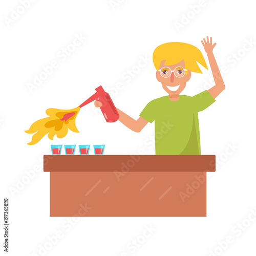 Personál restaurace a návštěvníci jíst, pití piva, vektorové ploché ilustrace izolované na bílém pozadí. Koncept restaurace pro webový banner, webovou stránku atd.