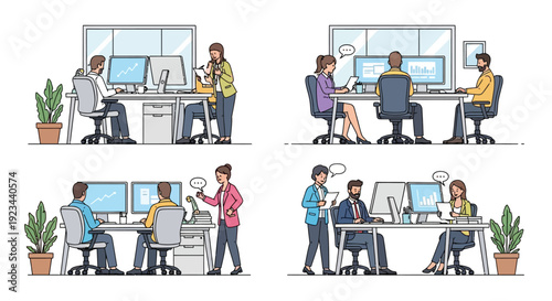 Scéna restaurace, plochý vektorový izolovaný obrázek. Šťastný pár jíst, restaurace kuchař připravuje rohlíky a sushi, číšníci přijímání objednávek a servírování jídlo. Sushi bar, japonská kuchyně.