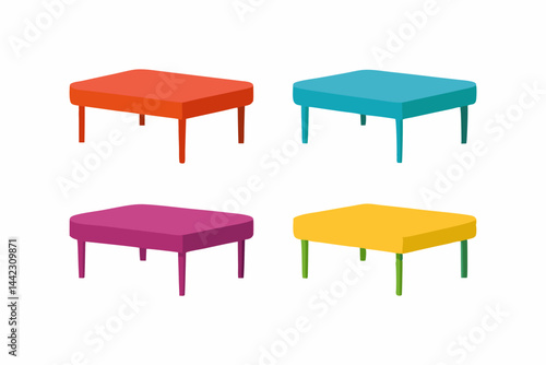 Restaurační stoly s ubrusy. Vektorové realistické ilustrace izolovaných na bílém pozadí.