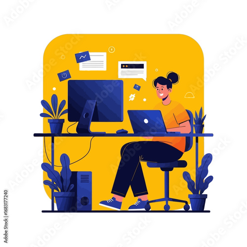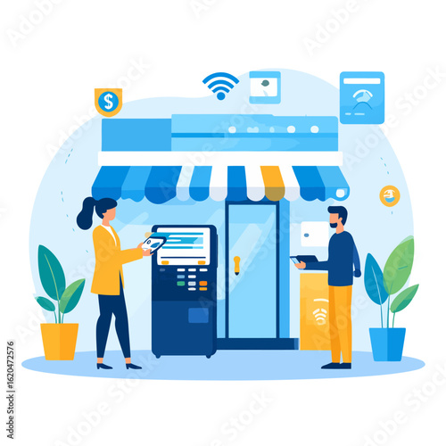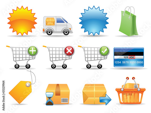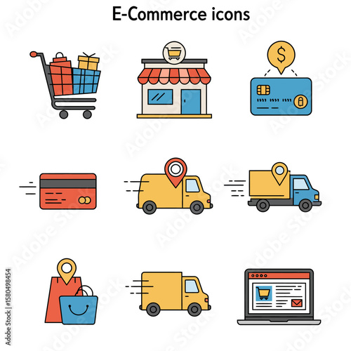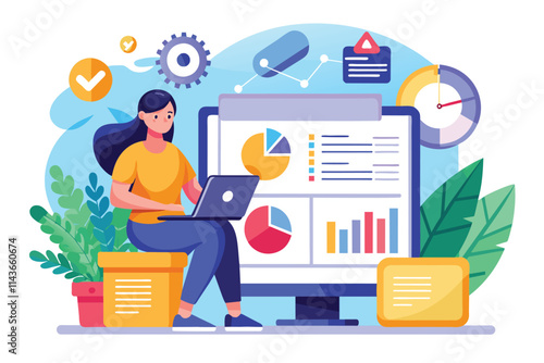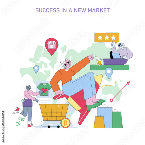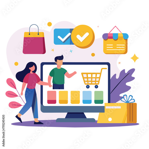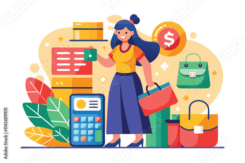 Vektorová plochá ilustrace malých lidí, kteří vkládají velké kartonové krabice do velkého nákupního košíku, mladá žena s nákupním vozíkem. Maloobchod, koncept online nakupování pro webový banner, webovou stránku atd.
