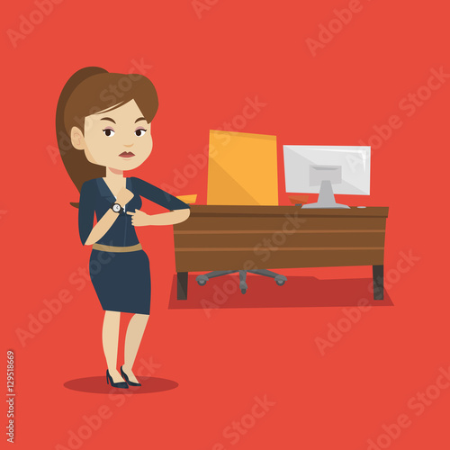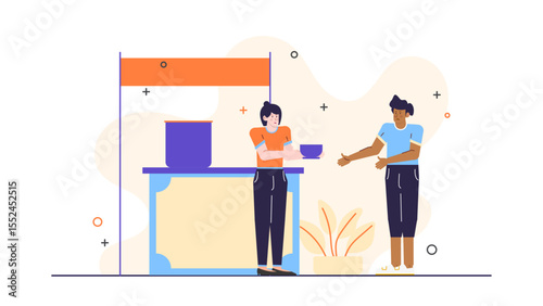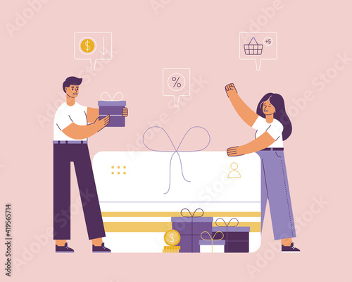 Pult maloobchodních prodejen. Šťastná žena nakupování v módním obchodě, ploché vektorové ilustrace. Pokladní žena dává nákupní tašku s nákupem dívce stojící u pokladny a nákup oblečení v butiku