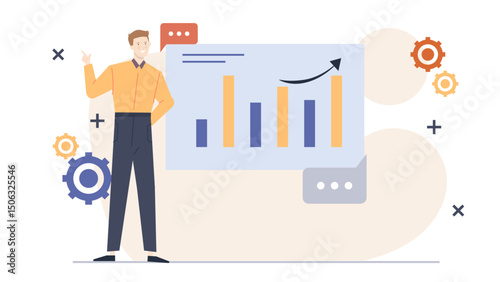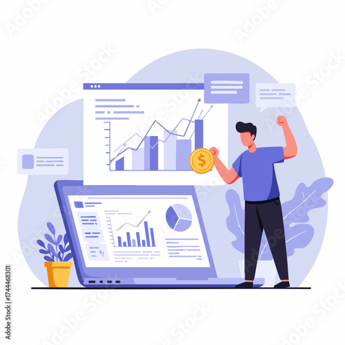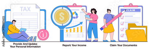 Výpočet příjmů vektorové ilustrace. Kreslený malý muž účetní postava stojící před obrovským mobilním telefonem pomocí digitální aplikace pro hlášení příjmů, vyplňování daňového formuláře, počítání zisku