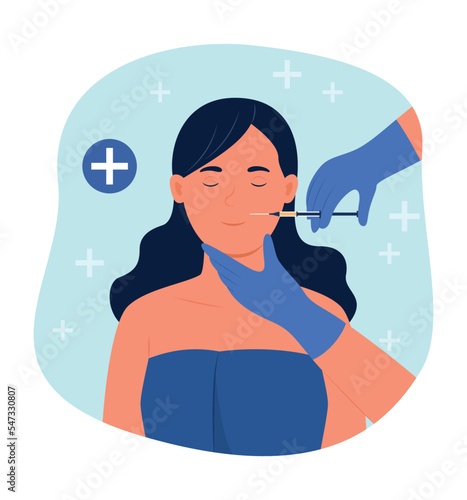 Plastika nosu, plastická chirurgie. Doktor zlepšení ženského vzhledu obličeje Změna tvaru nosu, ploché vektorové ilustrace. Konturování nosu a přetváření kosmetické procedury.