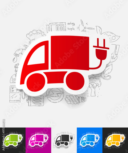 Zralé rajče nakládání do dodávky truck vektorové ikony izolovaných na bílém pozadí