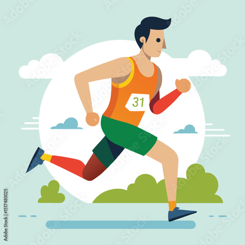 Robot a člověk běží maraton závod, ploché vektorové ilustrace. Robotický stroj vyhrál soutěž. Umělá inteligence vs. člověk.