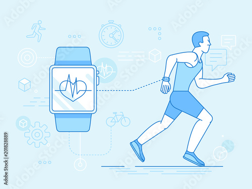 Robot a člověk běží maraton závod, ploché vektorové ilustrace. Robotický stroj vyhrál soutěž. Umělá inteligence vs. člověk.