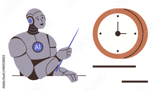 Robot asistent čištění podlahy vektorové ploché ikony izolovaných na bílém pozadí. AI robotický stroj pracuje každodenní rutinní práce pomocí koště a mop ilustrace. Technologie umělé inteligence