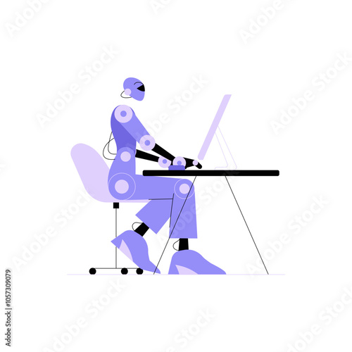 Robot asistent žehlení oblečení vektorové ploché ikony izolovaných na bílém pozadí. AI robotický stroj pracovní práce, dělá domácí práce ilustrace. Koncept futuristické technologie umělé inteligence