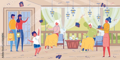 Robot asistent práce doma vektorové ilustrace. Automatizovaný pomocník úklid místnosti, žehlení, přinášení večeře, nošení prádla. Inteligentní AI stroj žena v domácnosti pro staré lidi