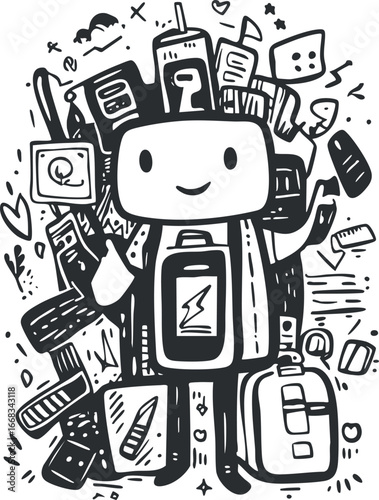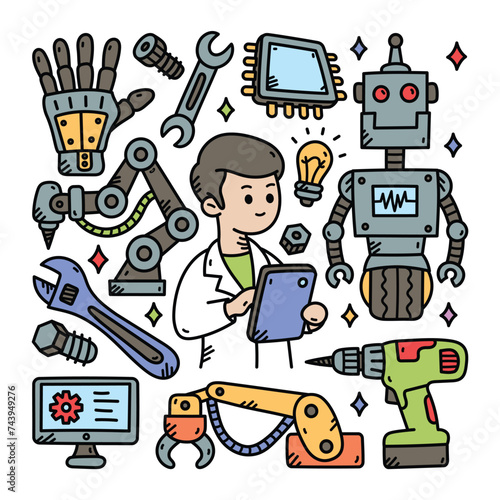 Vektorová ilustrace malých lidí inženýrů vytváření a programování velký robot. Robotická technologie, vynález robotů, umělá inteligence, Informatika a inženýrská koncepce.
