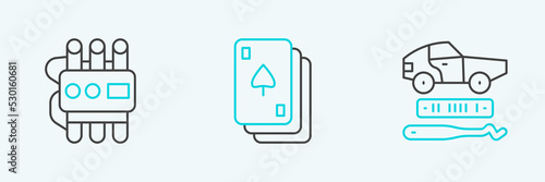 Robot pracuje na dopravníku dělat auto vektorové ikony izolovaných na bílém pozadí. Průmyslová automatizace výroby