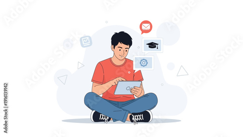 Škola robotiky. Roztomilý chlapec, budoucí inženýr stavební robot, ploché vektorové ilustrace. Kids robotics engineering.
