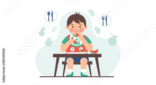 Robotická škola pro děti. Chytrý chlapec student dělat robot, ploché vektorové ilustrace. Kids robotics engineering.
