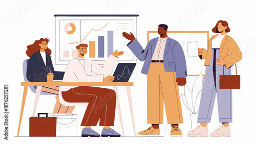 Roboti pracující na počítačích provádějících určité úkoly, ploché vektorové ilustrace. Softwarová technologie AI a rpa. Umělá inteligence a robotická automatizace procesů.