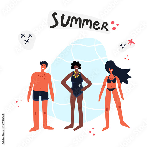Romantický pár procházky po pláži drželi se za ruce, vektorový plochý styl designu ilustrace. Letní dovolená u moře koncept pro webový banner, webová stránka atd.