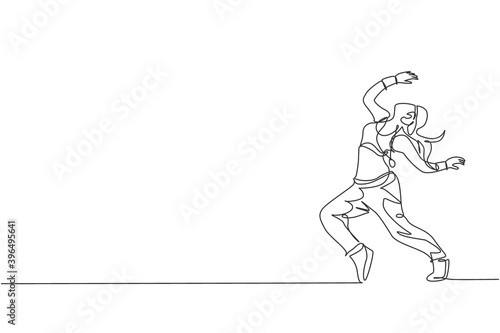 Nikdy zastavit koncept vektorové plakát banner šablony. Běžící dívčí silueta, nízké poly drátěné pletivo. Ilustrace polygonálního uměleckého stylu se Spojenými body, čarami, tvary.