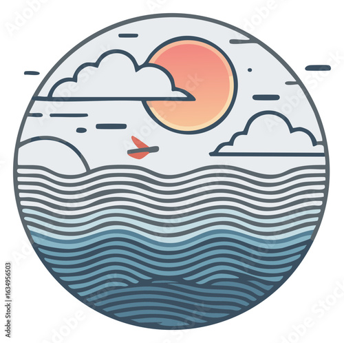 Plachetnice plující nad zuřící oceánskou vlnou s majákem, racek, vektorové ilustrace v papírovém uměleckém řemeslném stylu. Plachetnice a rozbouřené moře, plavba, dobrodružství, koncept námořní navigace.