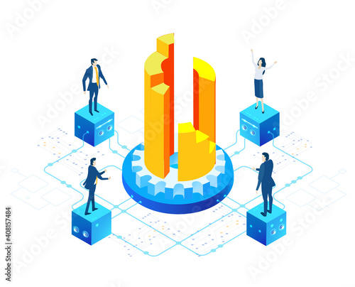 Šablona webové stránky vstupní stránky platu. Vektorové izometrické obchodní lidé stojící na hromadách dolarových mincí. Mzdy, výplata platu, rozdíly ve výši mezd.