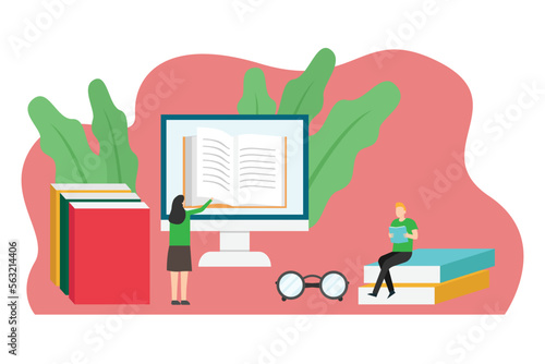 Prodej velkými písmeny, prodavači s cenovkou, Megafon, pokladní, nakupující žena kupující dárek pomocí kreditní karty, vektorová plochá ilustrace. Prodej a slevy, sezónní nabídky propagace.