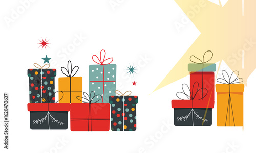 Prodej velkými písmeny, prodavači s cenovkou, Megafon, pokladní, nakupující žena kupující dárek pomocí kreditní karty, vektorová plochá ilustrace. Prodej a slevy, sezónní nabídky propagace.