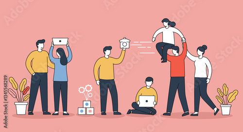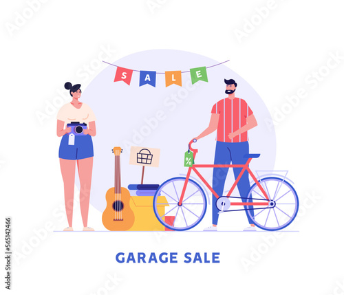 Prodej typografie banner šablony. Lidé nakupují, prodávají slovo, ploché vektorové ilustrace. Nabídky a slevy, obchod.