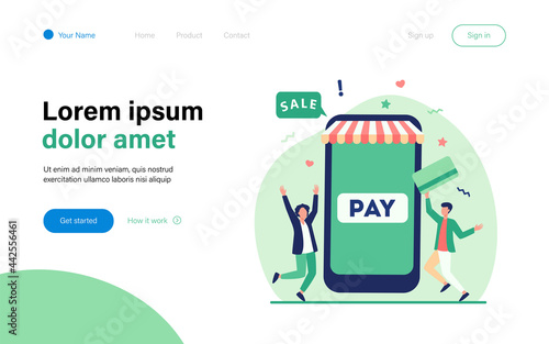 Prodejní vektorová webová šablona, webová stránka a design vstupní stránky pro vývoj webových stránek a mobilních stránek. Online nakupování výprodej, nabídky, slevy.