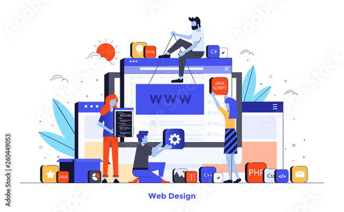 Prodejní vektorová webová šablona, webová stránka a design vstupní stránky pro vývoj webových stránek a mobilních stránek. Online nakupování nabízí koncept s postavami.