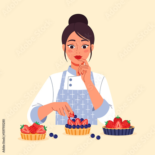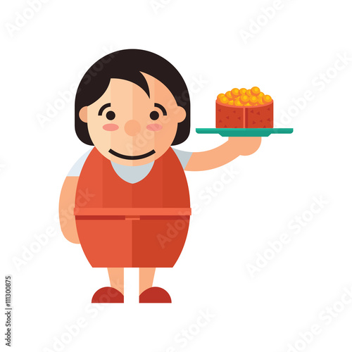 Prodavač nabízí čerstvé jahody sklizeň vektorové ikony izolovaných na bílém pozadí