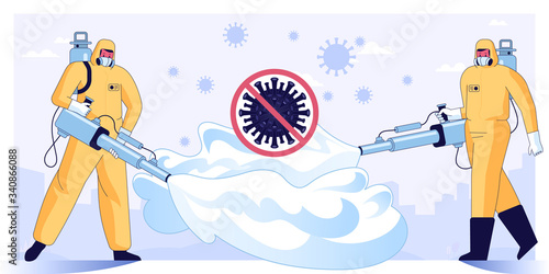 Sanitární a epidemiologická stanice pracovník ošetřující místo proti vektorové ikoně koronaviru izolovaných na bílém pozadí. Koncept virové pandemie.