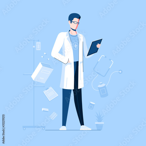 Sanitační Inspektor v ochranné opotřebení vektorové ikony izolovaných na bílém pozadí