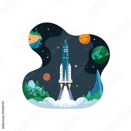 Satelitní vysílání signálu z vesmíru na planetu Zemi, ploché vektorové ilustrace. Satelitní internetová služba. Gps a 5G vysokorychlostní globální síť.