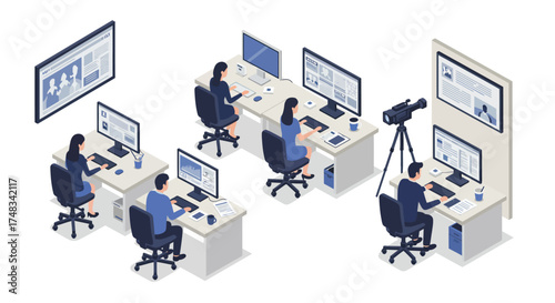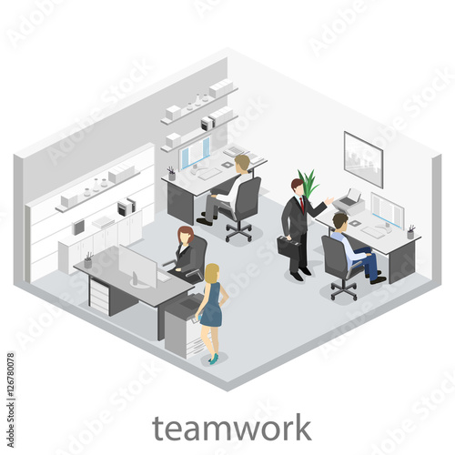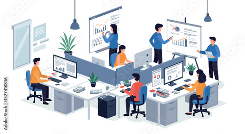 Setkání saúdskoarabských podnikatelů, ploché vektorové izometrické ilustrace. Arabští podnikatelé v tradičních šatech sedí v zasedací místnosti a poslouchají mladého muže, který přednáší.