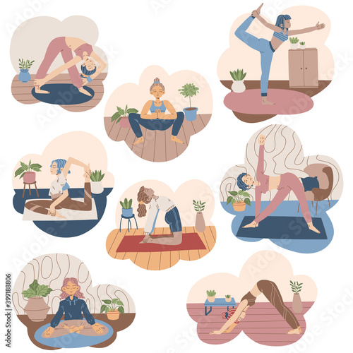 Saunová scéna. Uvolněný lidé znaky přičemž parní lázeň, s masáží s dubovými košťaty a koupací doplňky vektorové ilustrace. Kosmetologie, zdravotní péče a hygiena