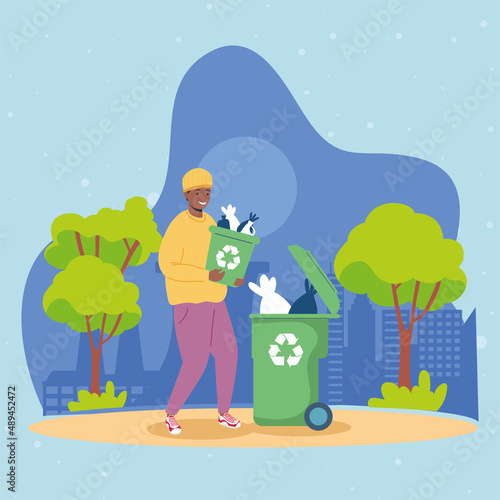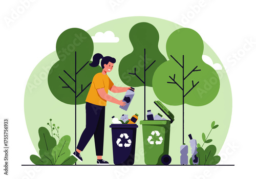 Planeta Země zeměkoule, lidé po celém světě sbírají odpadky, vektorová plochá ilustrace. Dobrovolníci pečující o čisté prostředí čištění ulice od odpadu. Zachraňte planetu, koncept Dne Země.