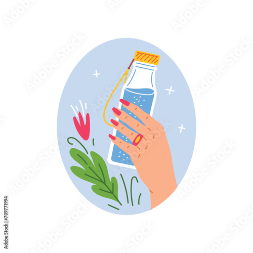 Ekologie a koncepce ochrany životního prostředí. Vektorový papír řez láhev na pitnou vodu s nápisem save water a stříkající vodou.