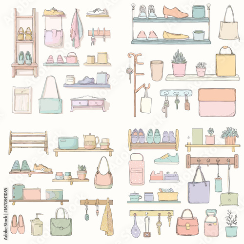 Rozptýlené oblečení v šatníku vektorové ikony izolovaných na bílém pozadí