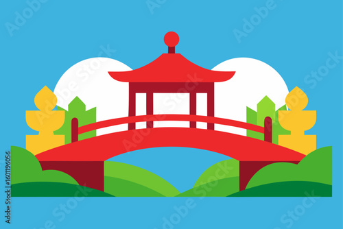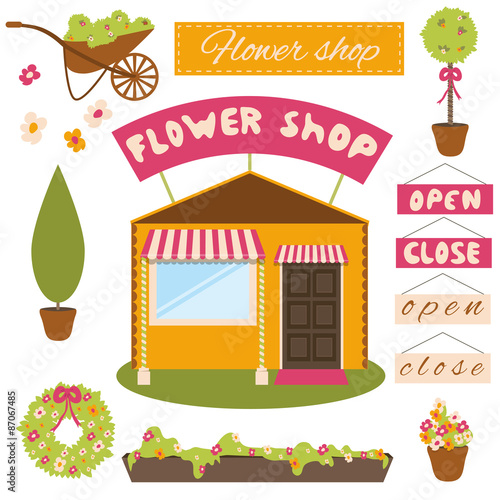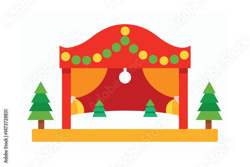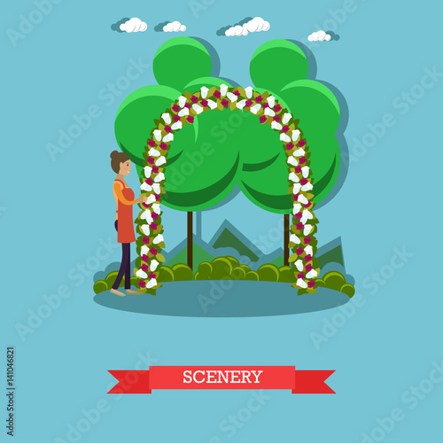 Vektorové ilustrace svatební oblouk zdobené květinami. Scenérie venkovního svatebního obřadu plochý styl designového prvku.