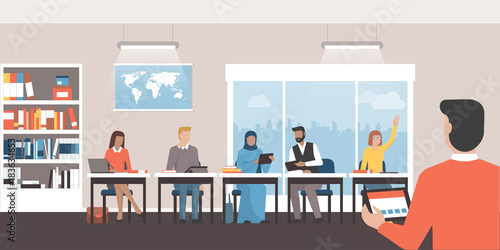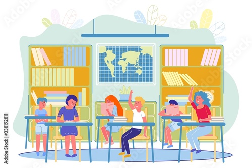 Žáci, studenti chlapci a dívky kreslené postavičky nákup občerstvení jídlo a pití z automatu ve školní jídelně, vektorové ilustrace. Koncept služby školní jídelny pro banner, webová stránka.