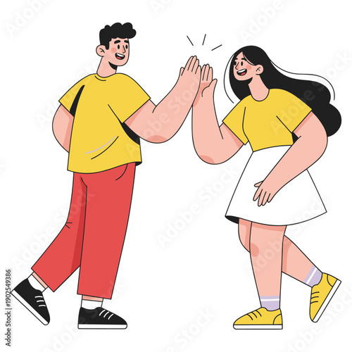 Školní děti znaky dávat vysoké pět vektorové ikony izolovaných na bílém pozadí.