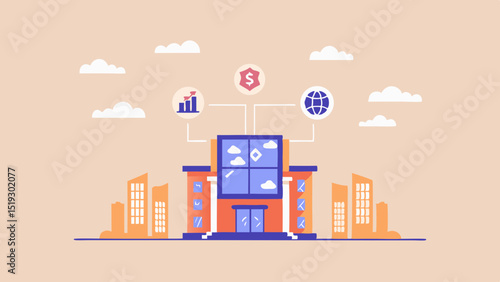 Vektorová ilustrace studentů s polední přestávkou, školní kuchaři s rychlým občerstvením. Interiér školní jídelny nebo jídelny s nábytkem. Školní koncept plochý styl designové prvky.