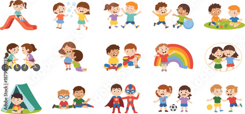 Školní maskot postavy set. Vzdělávací položky vektorové ilustrace. Funny cartoon děti zásoby pro studium s šťastný úsměv izolovaných na bílém pozadí. Zpátky do školy